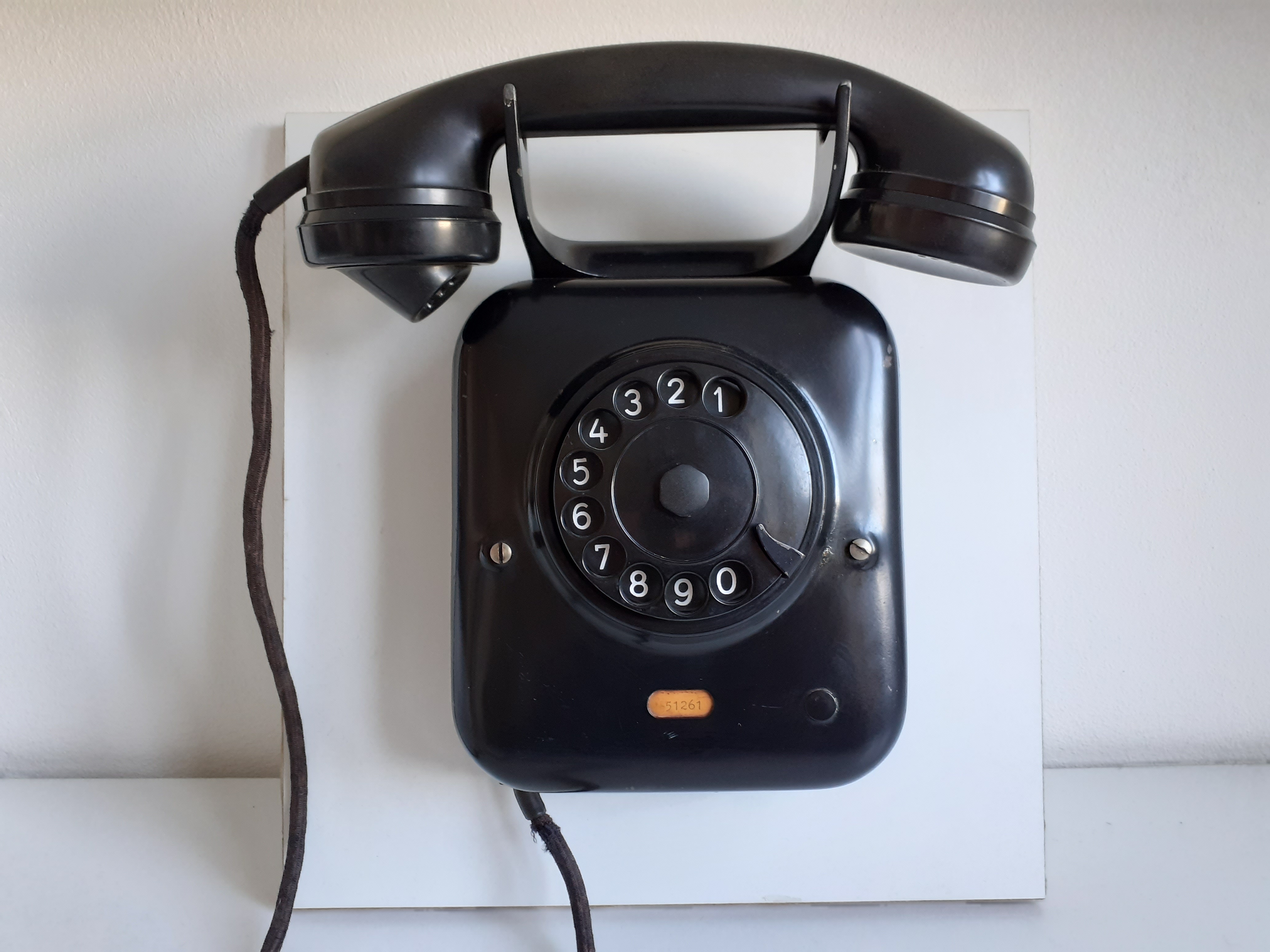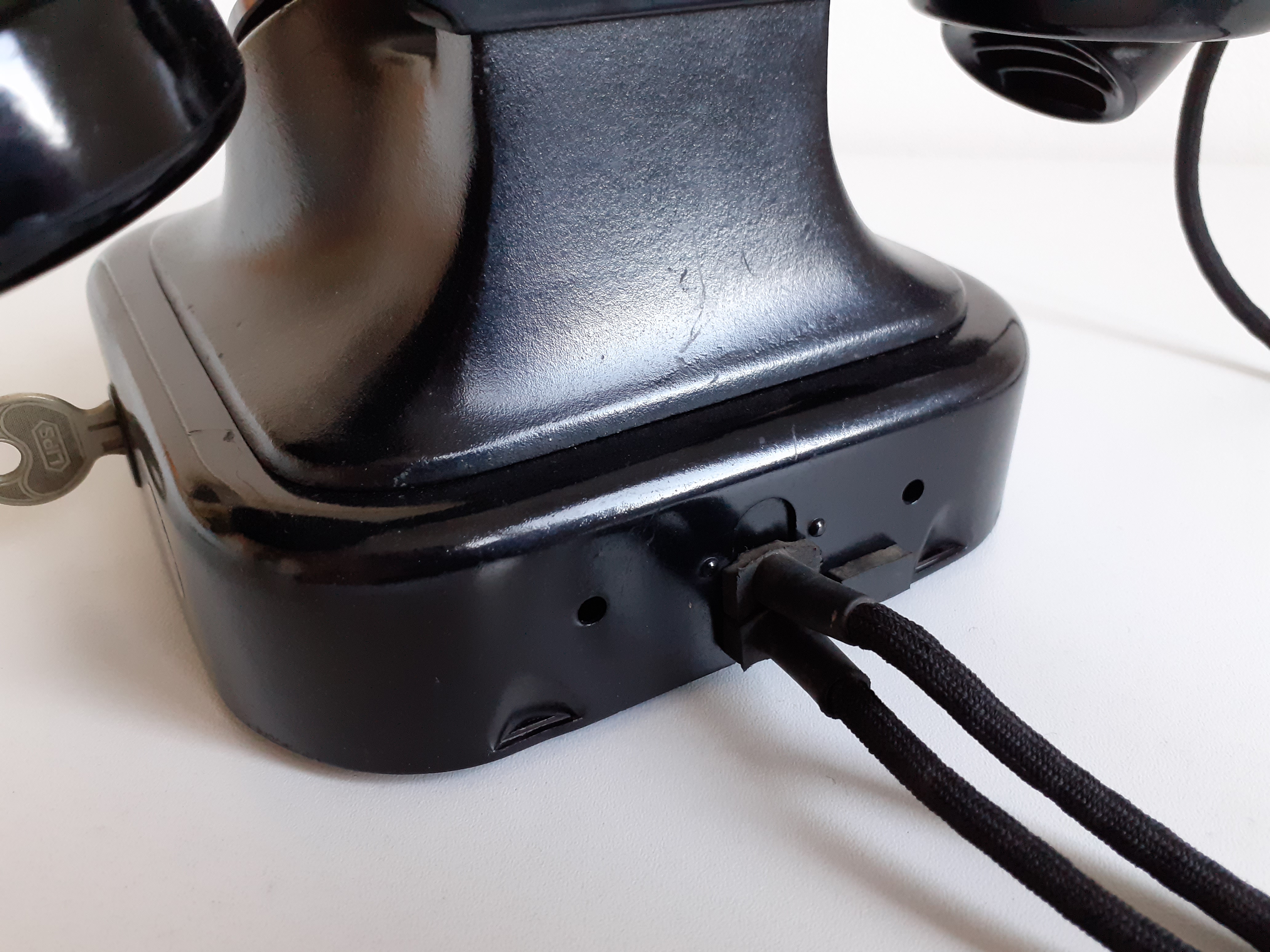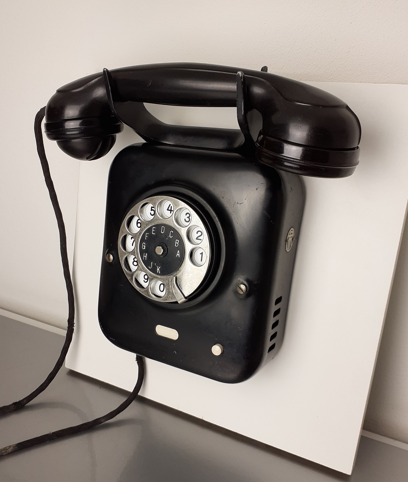 Naast de tafelmodellen zijn ook wandtoestellen aan Norm ’51 aangepast. Opvallend bij het exemplaar in figuur 35 is dat het voorzien is van een slot om uitgaand bellen te blokkeren. Het slot is, zeker bij de wandtoestellen, een weinig voorkomende optie.