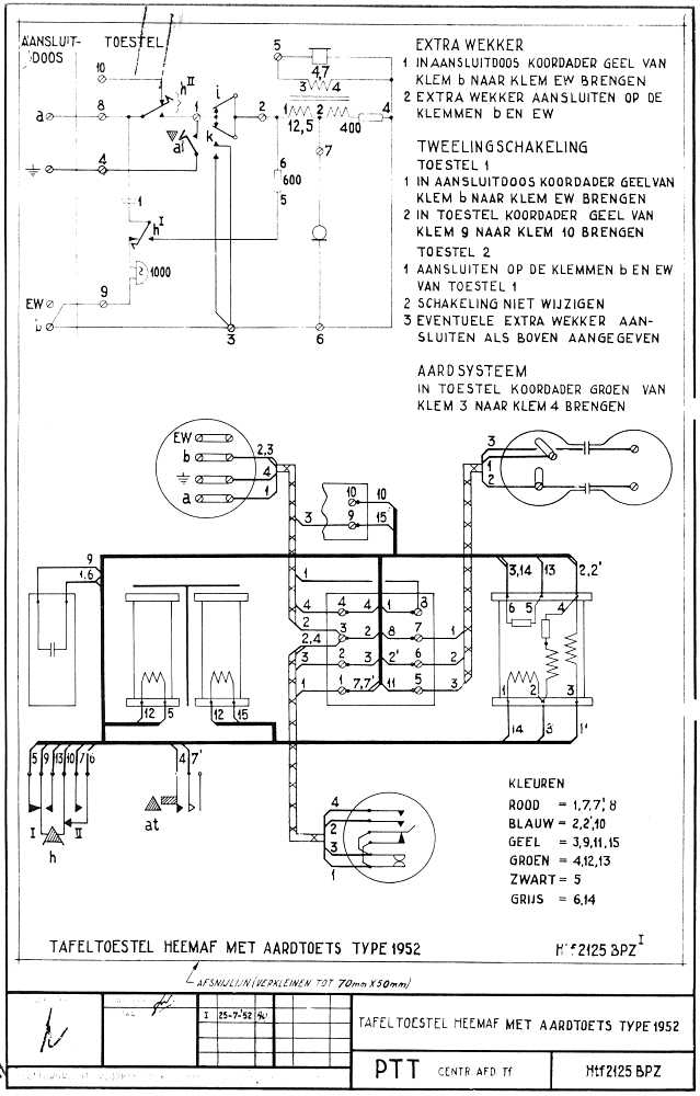 Het type 1952 is een verdere doorontwikkeling welke voldoet aan de PTT Norm ’51, elektrisch gezien wijkt het dus af van de voorgaande modellen, typen 1938 en 1931. De nieuwe elektrische schakeling is slimmer van opzet en is grotendeels gebaseerd op de schakeling van de Ericsson toestellen. Het mechanisme dat de kiesschijf blokkeert als de hoorn op de haak ligt is bij type 1952 toestellen dan ook niet meer aanwezig.
