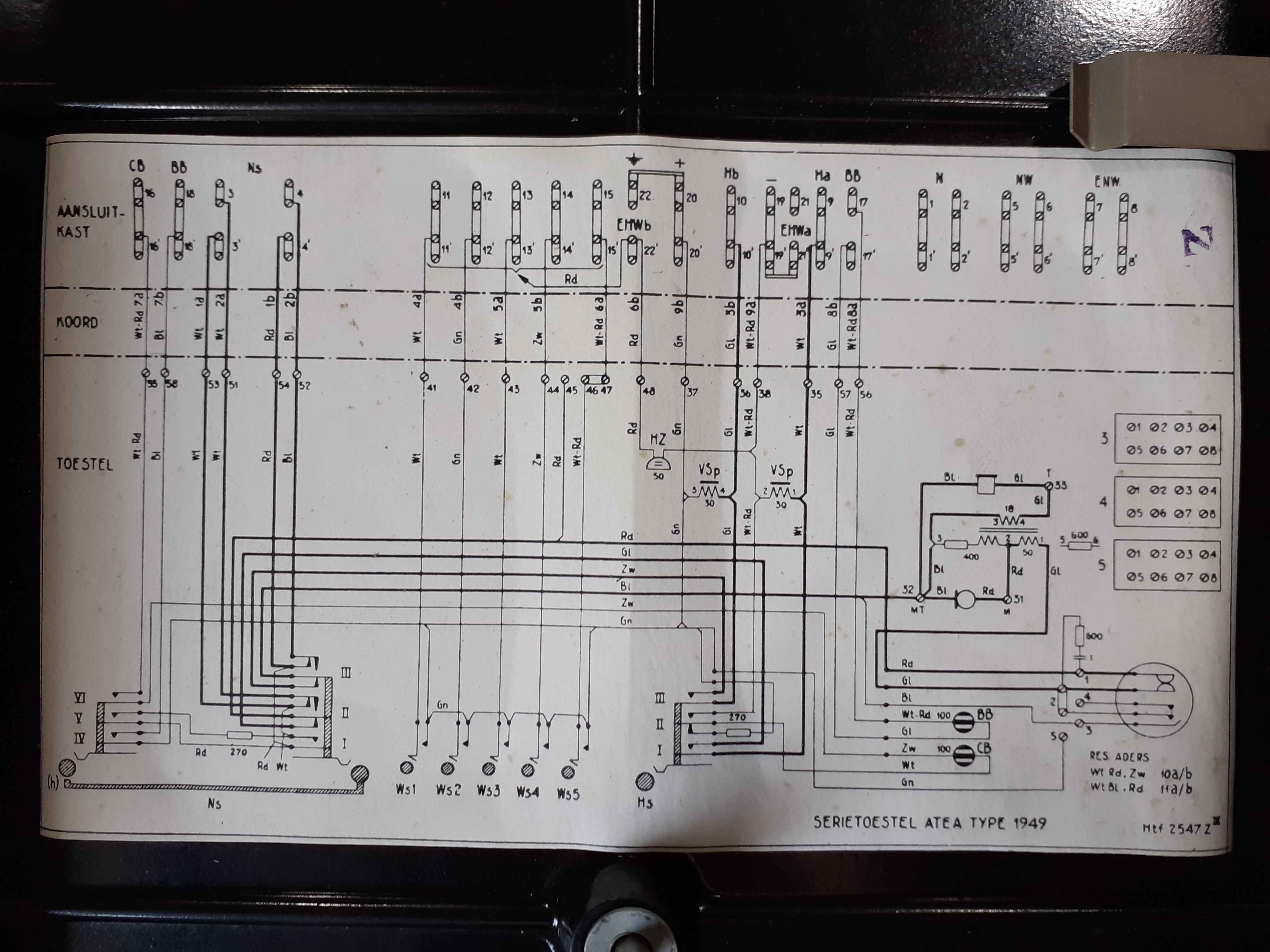 Soortgelijke toestellen werden destijds ook veel in België gebruikt. De fabrikant is namelijk de Antwerpse firma Atea, wat staat voor Automatique Electrique Anvers SA. Het is een ontzettend zware telefoon, het weegt 4,5 kilogram. Gelukkig hoeft zo’n toestel als dit niet vaak verplaatst te worden, mocht dat wel nodig zijn dan zit daarvoor een handgreep aan de achterkant.